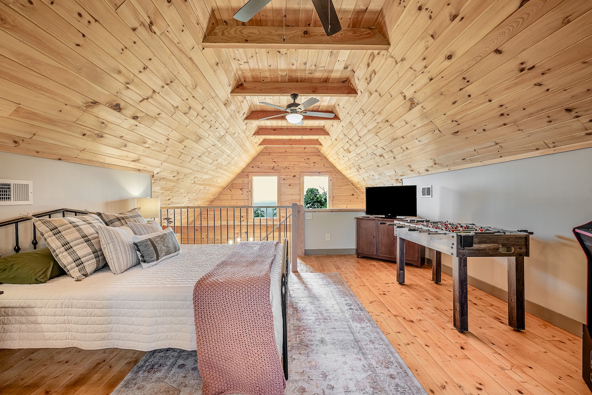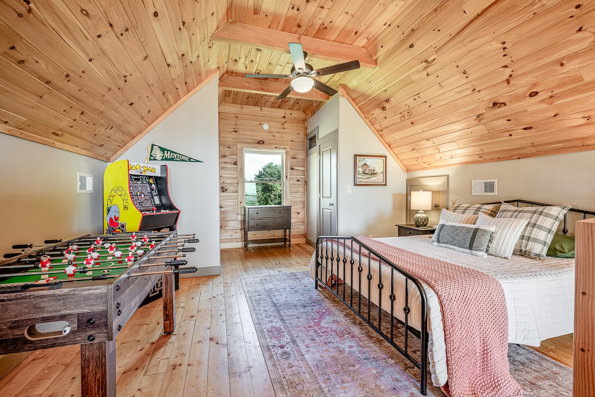 You'll find plenty of opportunities to keep the fun going like an arcade game, foosball, board games, and cornhole.